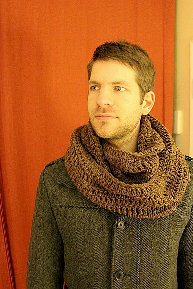 Okay so I've heard it's hard to find a good men's scarf this year. So because of this tragic situation I have made a very easy very simple yet charming infinity scarf to share with you all... for FREE. so merry christmas! lol. This pattern is MINE. Please do not sell the pattern, go ahead and sell finished product if you wish. Thanks and enjoy!